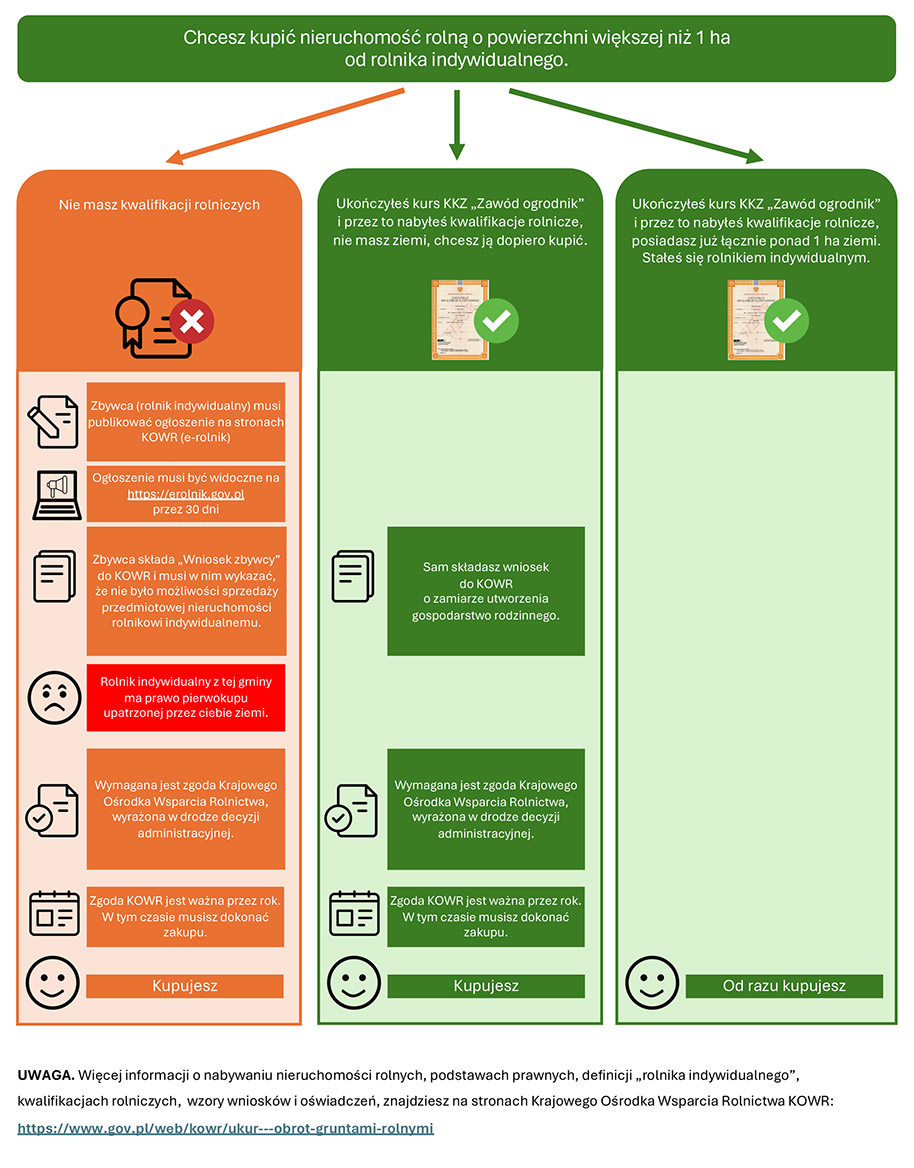 Więcej informacji na temat zakupu gruntów, znajdziesz tutaj: https://www.gov.pl/web/kowr/ukur—obrot-gruntami-rolnymi